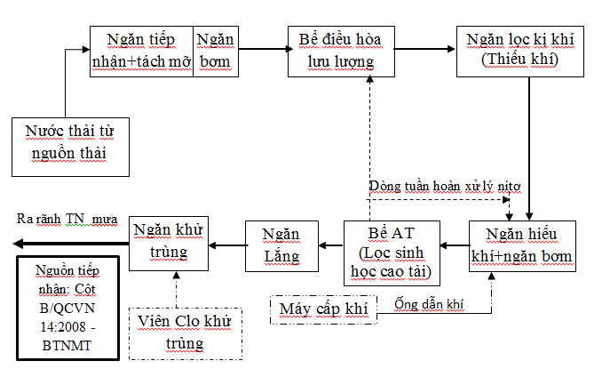 Dựa trên điều kiện thực hiện mặt bằng thực tế và khả năng hoạt động thành công của hệ thống xử lý, chúng tối đề xuất công nghệ xử lý sinh học như sau: