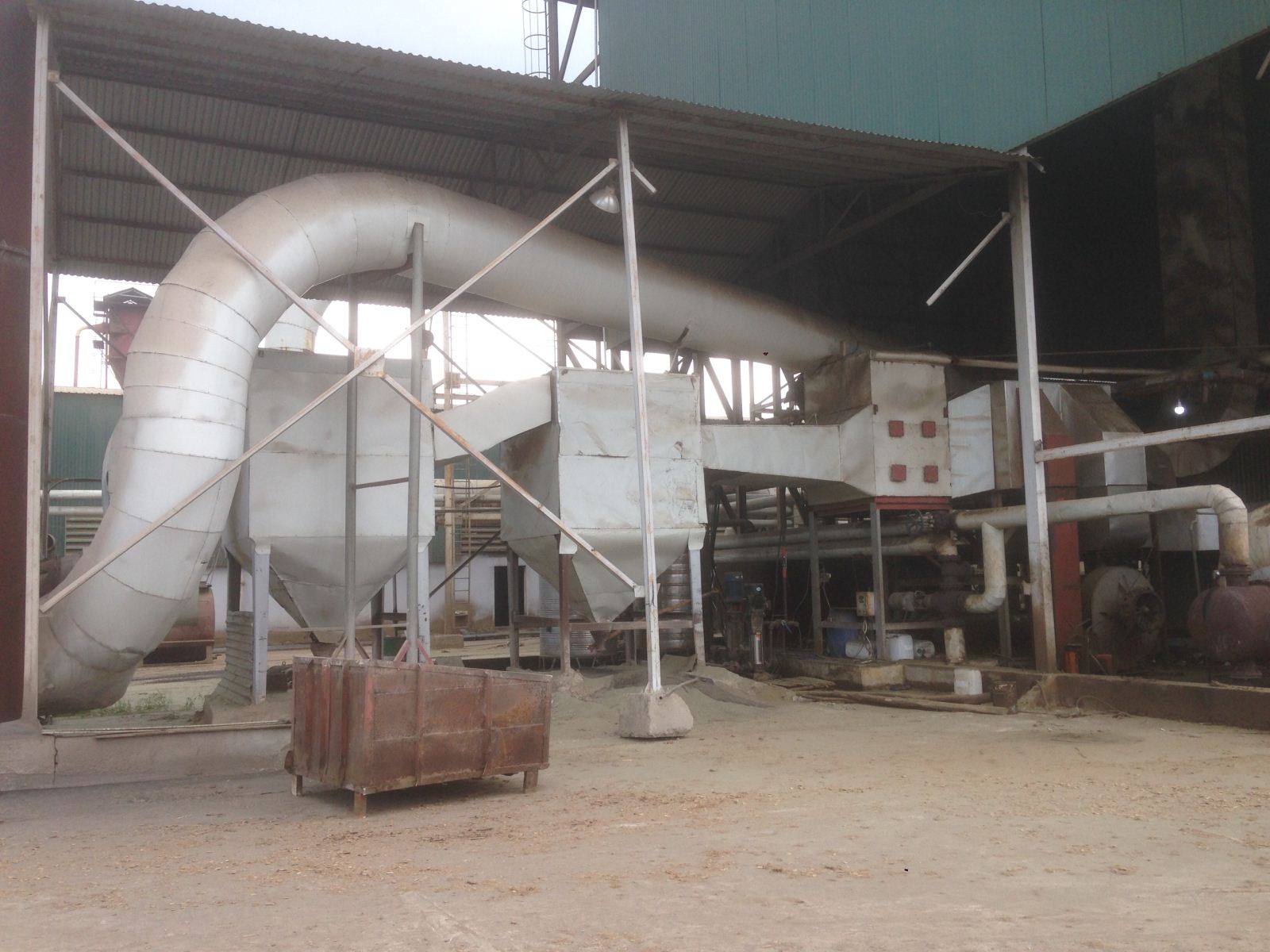 Dòng khí thải sau quá trình sản xuất chứa bụi sẽ được thu về hệ thống xử lý. Tại đây dòng khí và bụi được đưa qua tháp giải nhiệt trước khi vào Xyclon. Sau đó được đưa vào Xyclon theo phương tiếp tuyến để tách phần lớn tro bụi, muội than dưới tác dụng của lực ly tâm và trọng lực, các hạt bụi có kích thước lớn sẽ va chạm vào thân thiết bị và mất quán tính rơi xuống đáy Xyclon định kỳ được thu ra ngoài.