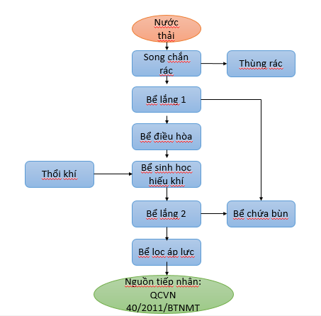 Tiếp theo nước thải được dẫn qua bể điều hòa để ổn định lưu lượng vfa nồng độ chất thải trong nước thải trước khi qua bể xử lý sinh học hiếu khí