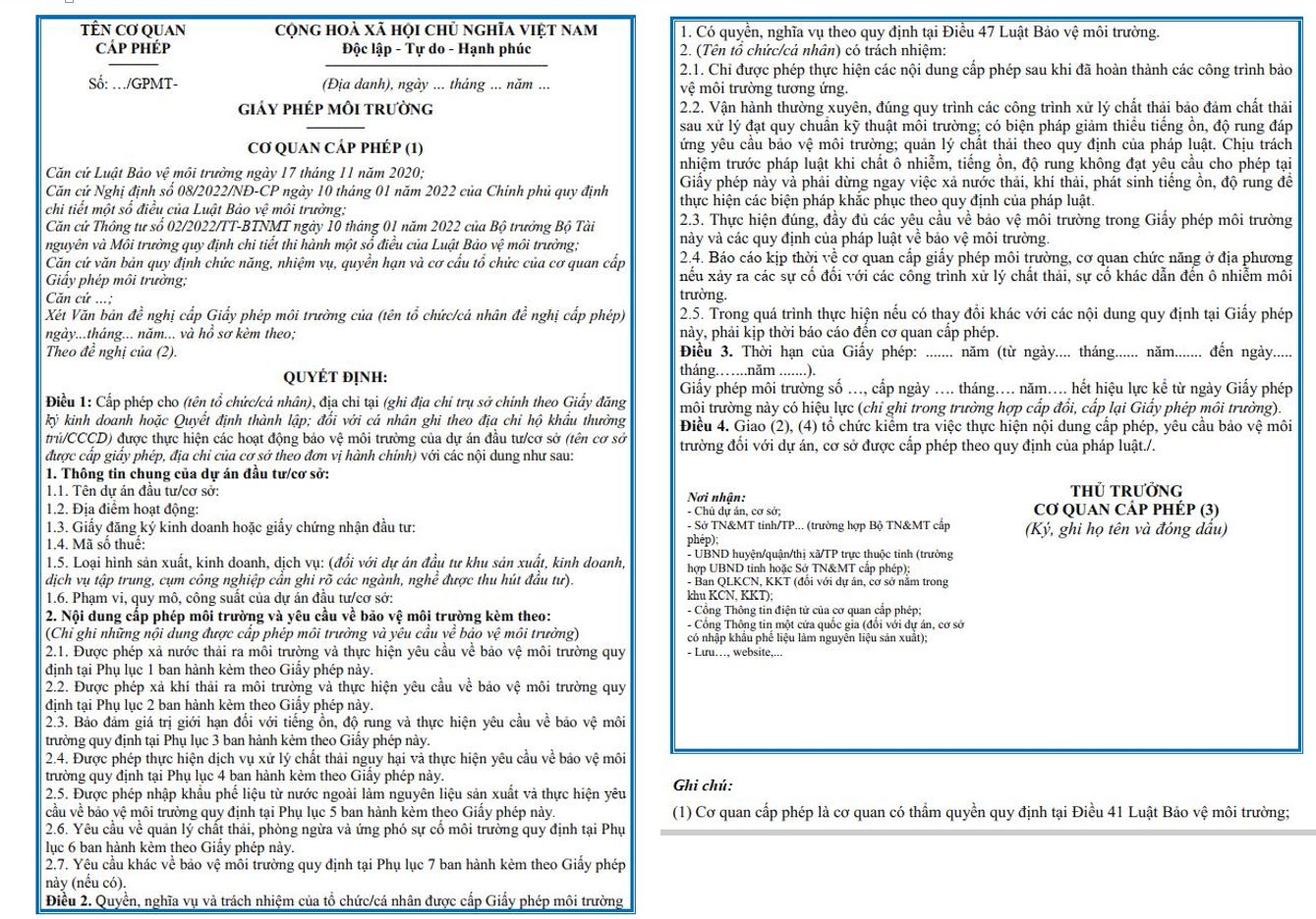 Giấy phép môi trường (GPMT) là văn bản do cơ quan quản lý nhà nước có thẩm quyền cấp cho tổ chức, cá nhân có hoạt động sản xuất, kinh doanh, dịch vụ được phép xả chất thải ra môi trường, quản lý chất thải, nhập khẩu phế liệu từ nước ngoài làm nguyên liệu sản xuất